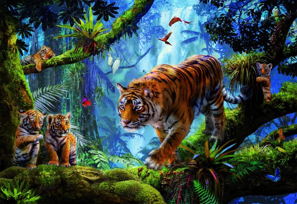 Puzzel van 1000 stukjes – tijgers in de jungle!Â